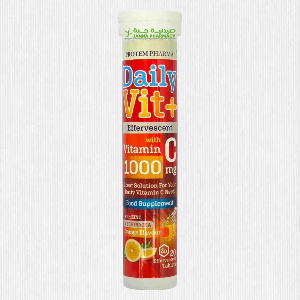 Protem Pharma Daily Vitamin C 1000 +Zinc +D Eff Tab 20's Original price was: 40.00 QR.Current price is: 28.00 QR.